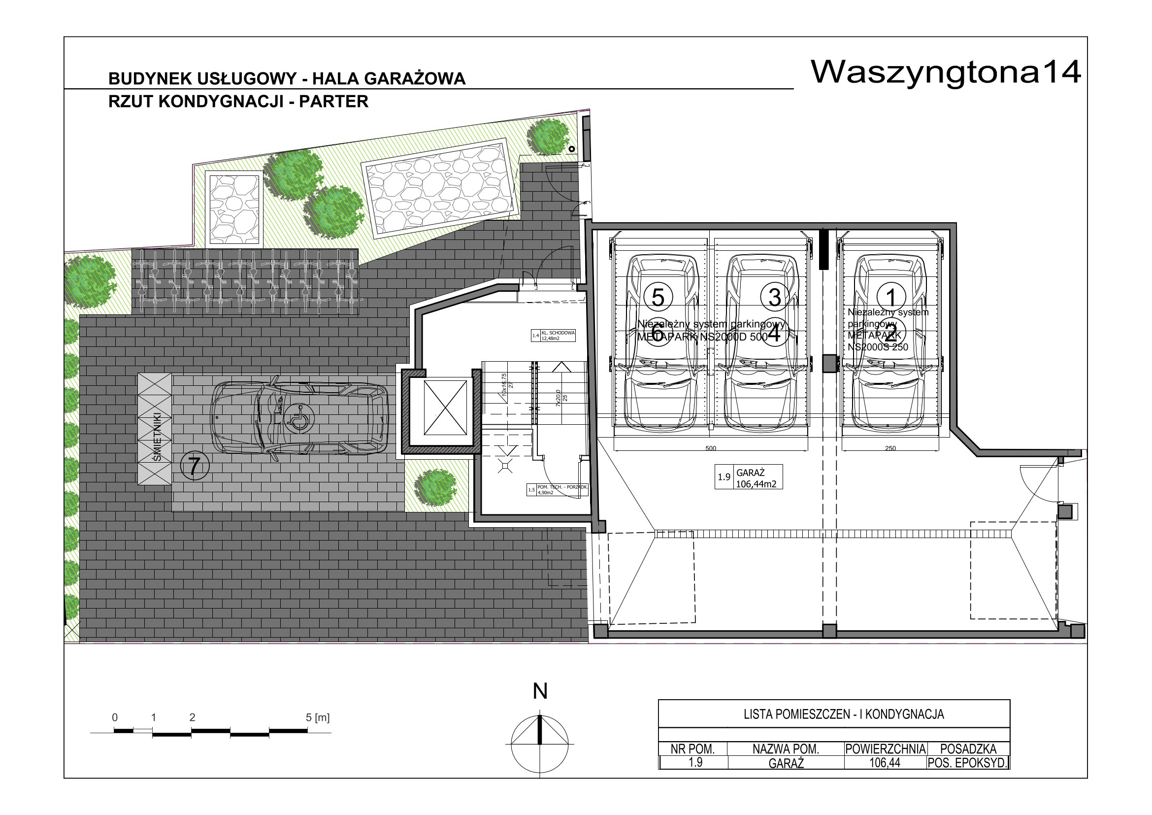 Zapewnione sześć miejsc postojowych w formie platform parkingowych.